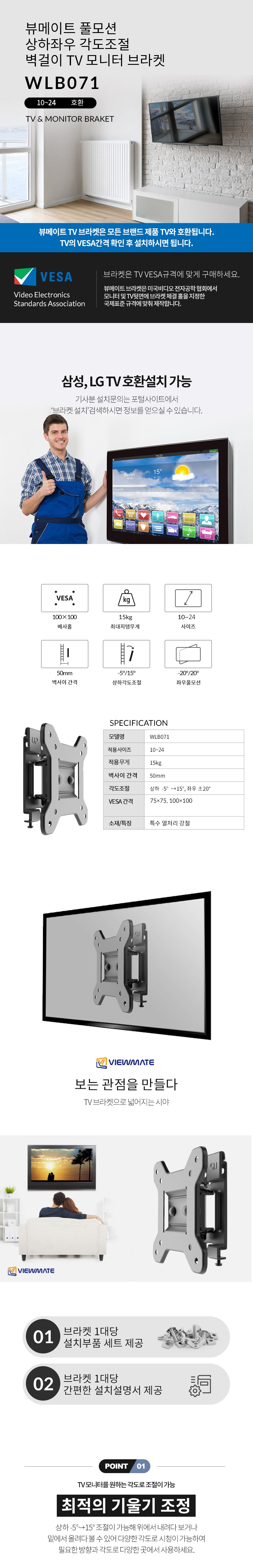 뷰메이트 상하좌우 각도조절 벽걸이 TV 모니터 브라켓 WLB071