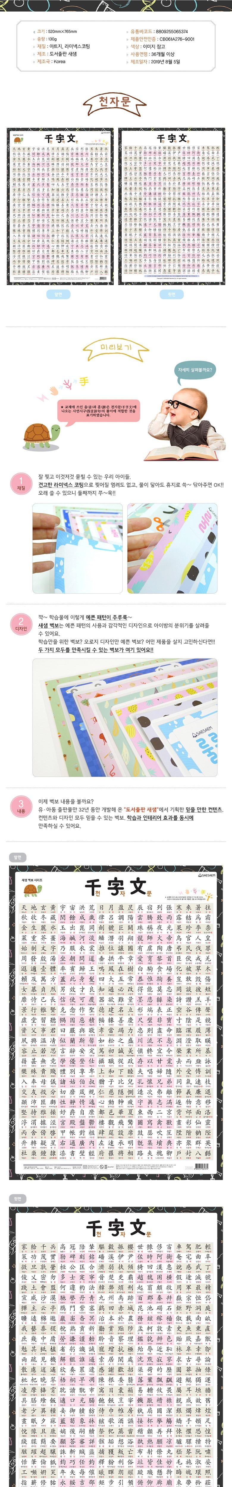 새샘출판사 (98무배) 천자문 양면 코팅 브로마이드 벽보