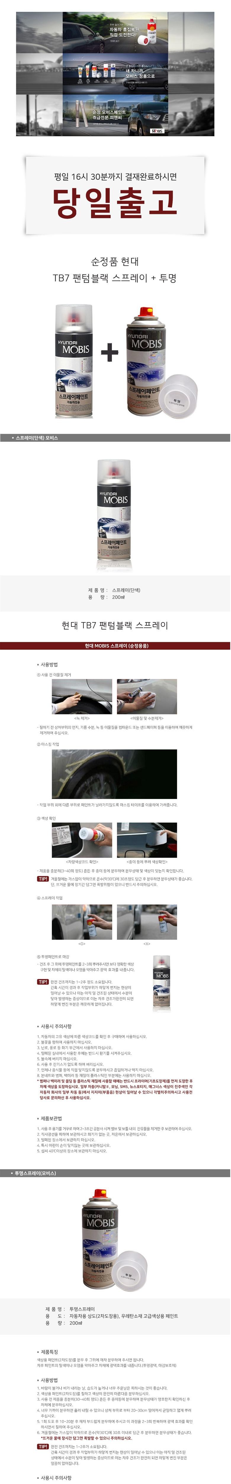 순정품 현대 그랜져HG TB7 팬텀블랙 스프레이 + 투명스프레이 자동차 도색 차량용 카페인트, TB7스프레이+투명스프레이(모비스)