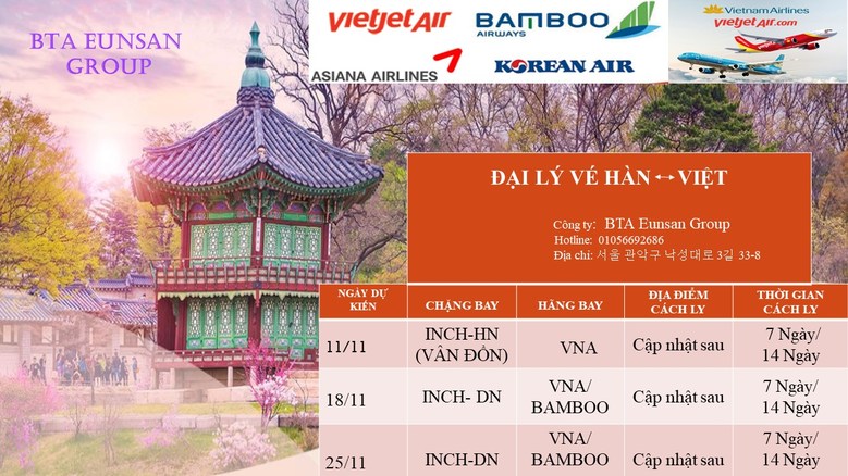 11월 베트남- 한국 항공권 INCHEON- HN DN VANDON (베트남 사람만 살수있음)