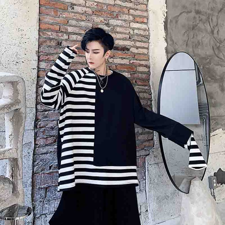 2021 댄 싱 마 운 틴 룩 루즈 와 이 드 블 루 코트 캐 주 얼 맨투맨 세로 스 트 라 이 프