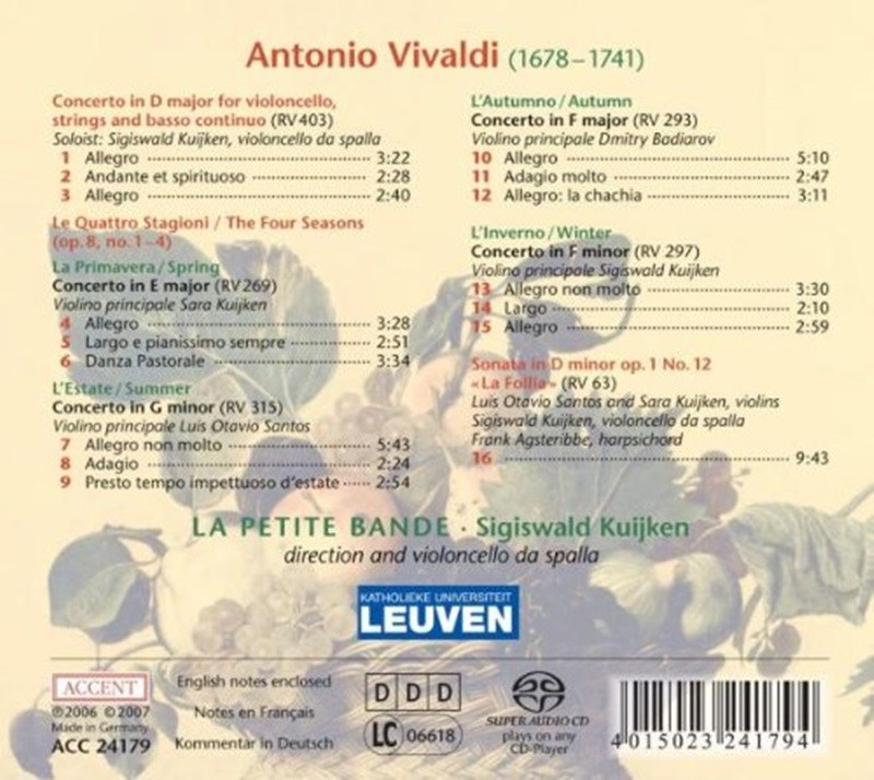 ANTONIO VIVALDI – LE QUATTRO STAGIONI/ LA PETITE BANDE SACD HYBRID 비발디 사계 네덜란드수입반, 1CD