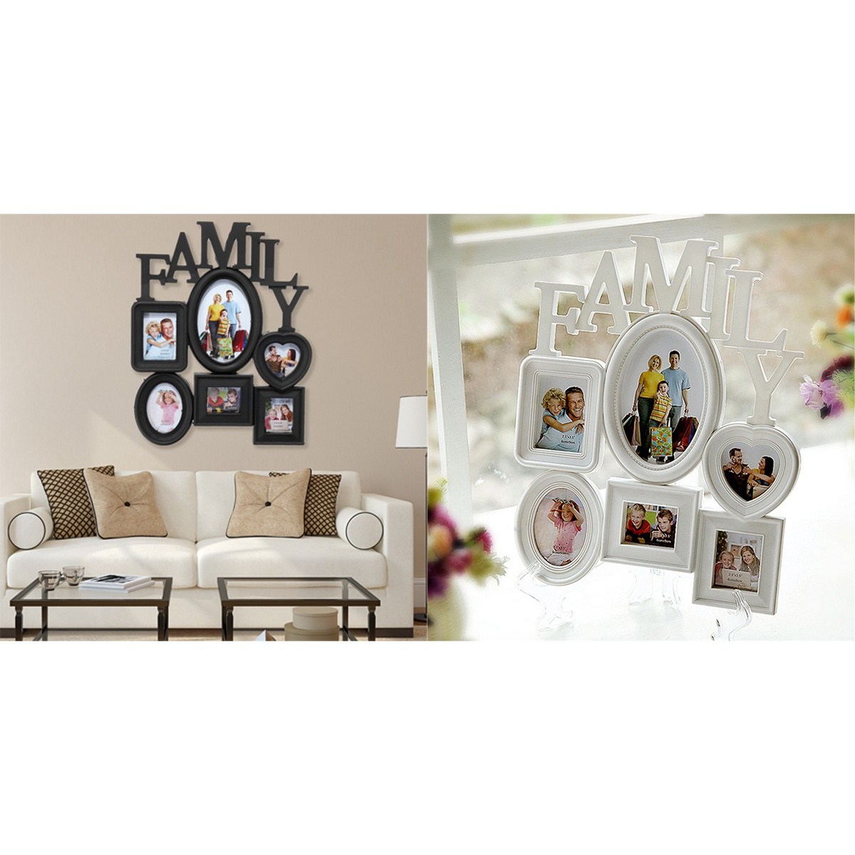 Deoxygene 2x 가족 사진 프레임 벽 교수형 6 멀티 크기 홀더 디스플레이 홈 장식 선물 30X37cm 뒷면 풀 탭-화이트 & 블랙, 화이트 & 블랙