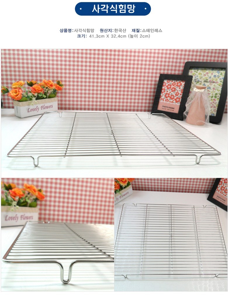 | 품명 및 모델명 | 사각식힘망/사각채반/식힘/케익만들기/DIY/베이킹도구 2. 41cm X 32cm |