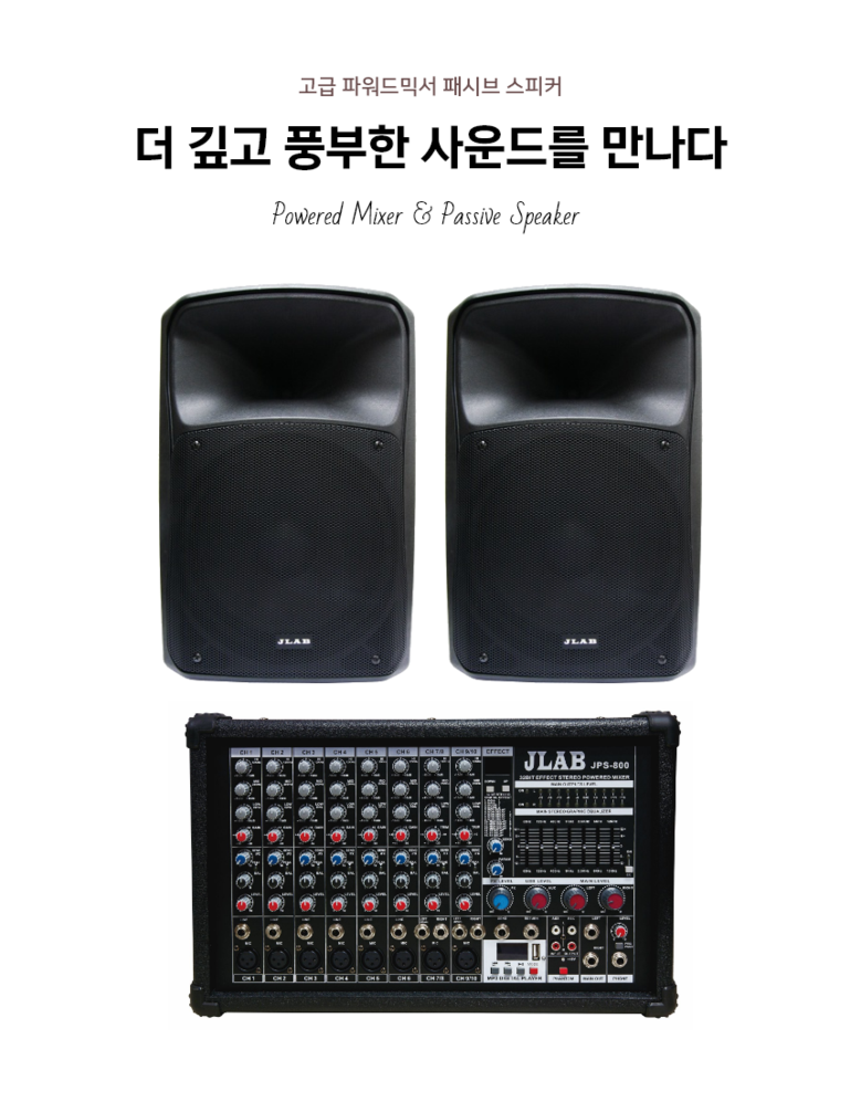 JLAB JPS-800 파워드믹서 JPS-12 스피커(1개)세트 800W 12인치 2WAY 패시브 스피커 교회음향 댄스학원, JPS-800/JPS-12