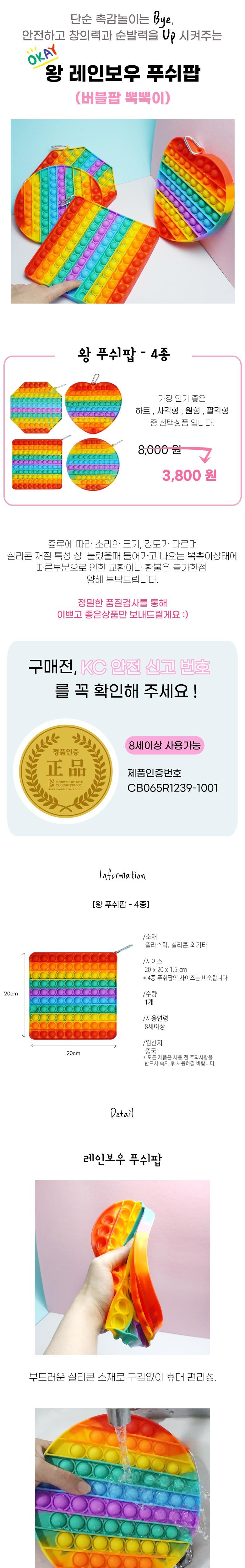 [KC인증] 스위트데이 20CM 왕 레인보우 푸쉬팝 뽁뽁이 버블팝 도형팝잇 실리콘팟잇 집콕놀이/ 두뇌게임, 팔각형