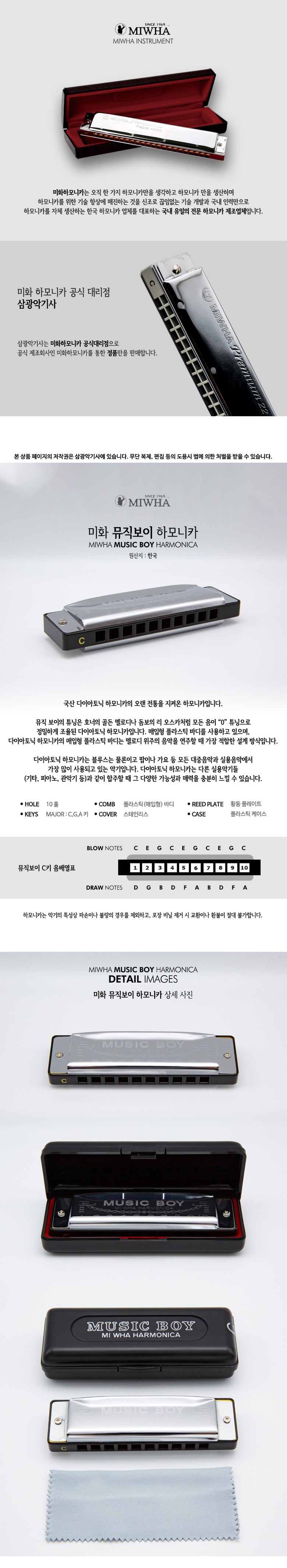MIHWA 미화 뮤직보이 10홀 다이아토닉 하모니카, C키