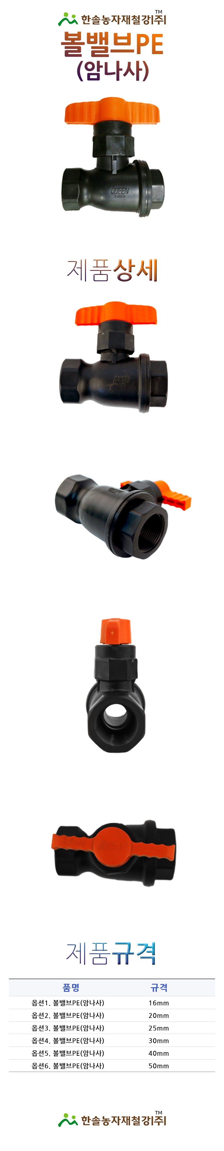 PE 볼밸브/암나사밸브 16~50mm/농업용 관수자재/해수용/한솔농자재철강, 옵션6. 50mm