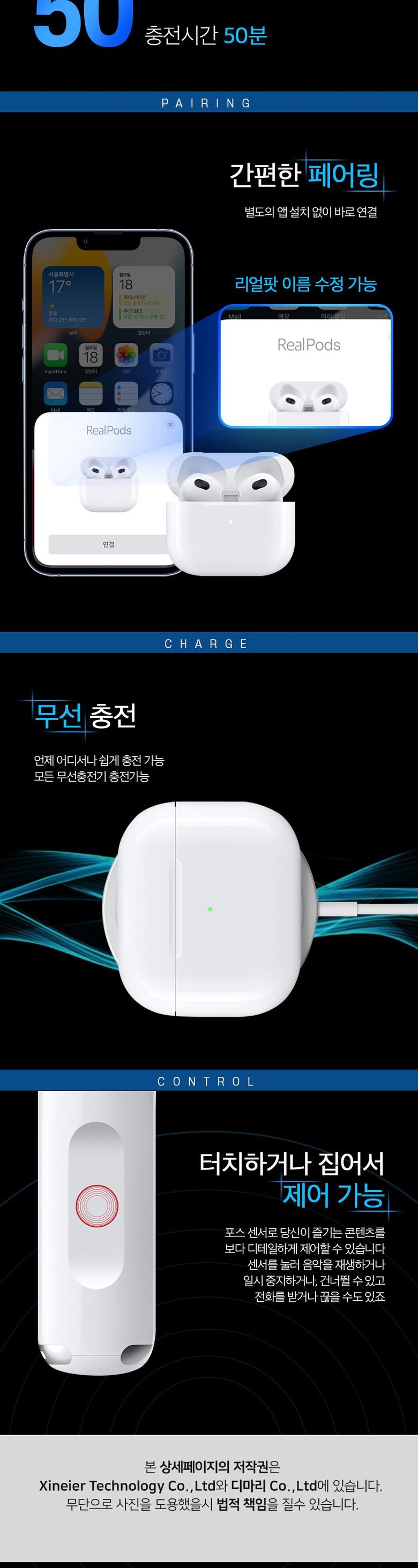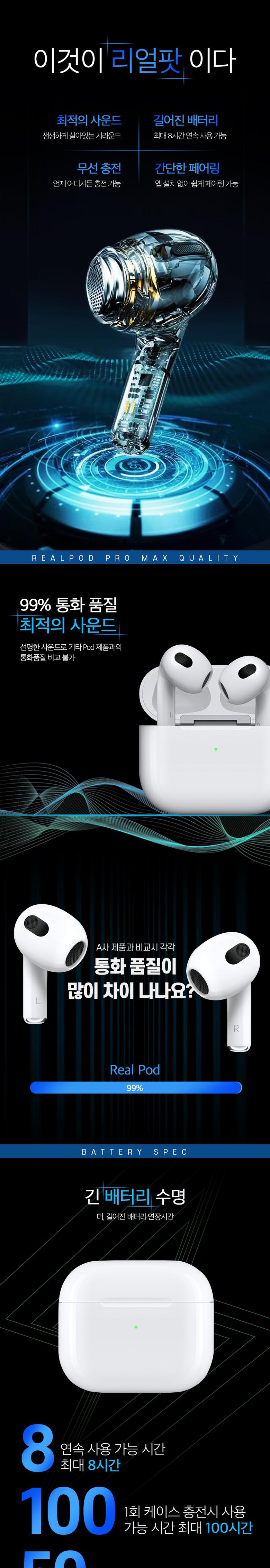 RealPod 3세대 무선충전 블루투스 이어폰