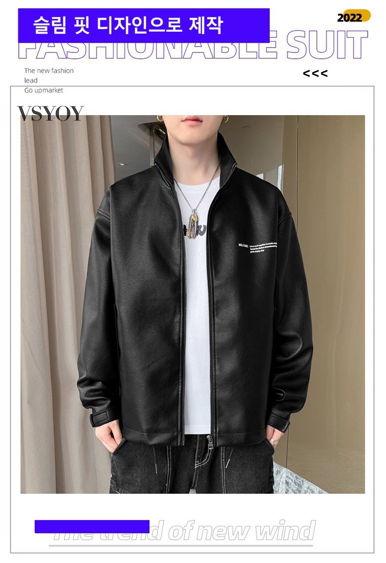 vsyoy 봄 가을 패션 PU 코트 남봄 가을신상 홍콩풍 라이더 자켓 캐주얼 오버핏 코트